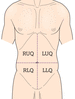 The four quadrants of the abdomen. LLQ, left lower quadrant; LUQ, left upper quadrant; RLQ, right lower quadrant; RUQ, right upper quadrant.