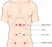 Auscultation points and location of the heart valves.